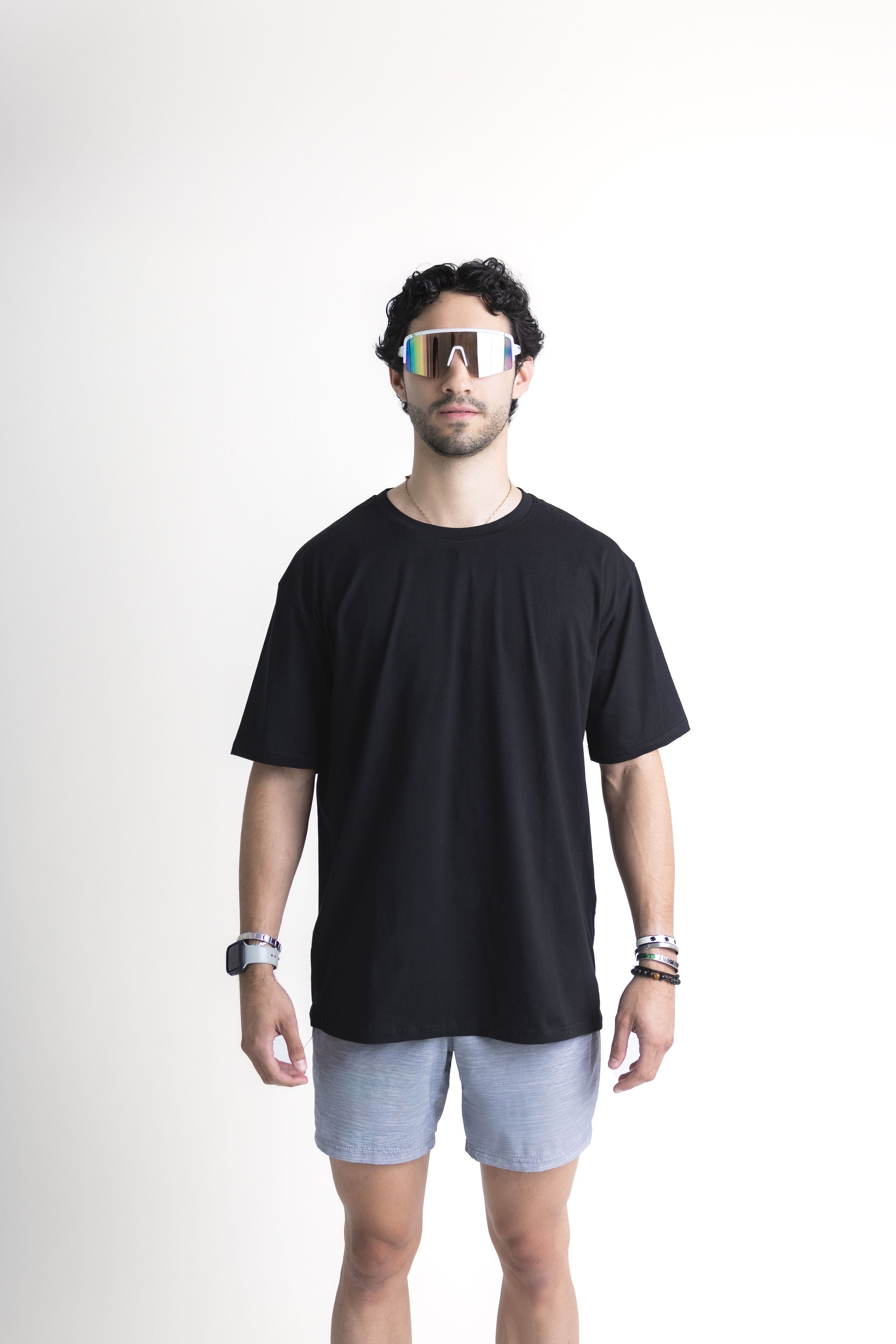 Playera Semi Oversize Negra 95% Algodón, 5% Elastano
